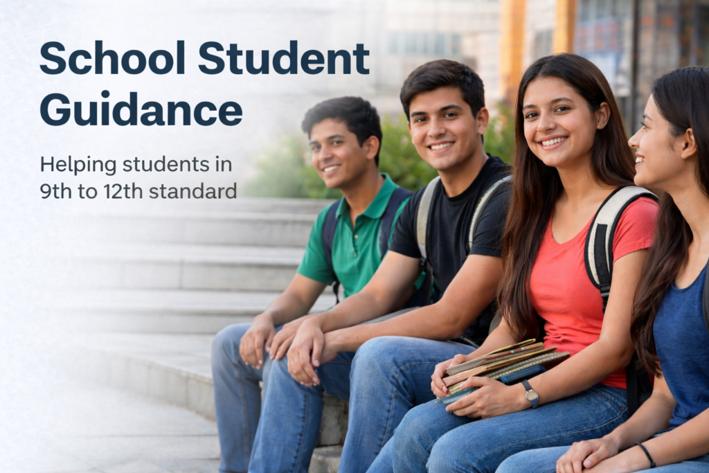 Our school student guidance program is the foundation of our free services offering. Designed specifically for students in their critical academic years — particularly those completing their 9th, 10th, 11th, and 12th standards — this program provides structured, professional guidance at a time when students need it most.